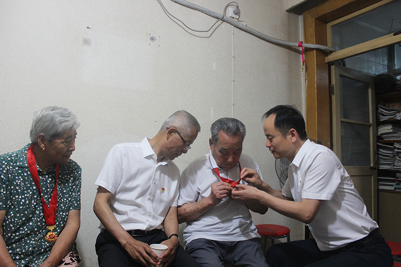 在小區(qū)離退辦,王建國詳細(xì)詢問了老人們的身體狀況、生活情況,囑咐老人要注意保重身體,并叮囑隨行人員一定要結(jié)合黨史學(xué)習(xí)教育,帶著感情、帶著責(zé)任幫助他們解決實際困難,落實好各項政策,照顧好日常生活,讓他們切實感受到組織的溫暖、幸福愉快地安享晚年。他為在黨50年的老黨員們親手佩戴了黨中央頒發(fā)的“光榮在黨50年”紀(jì)念章,并與部分老黨員進(jìn)行了座談。佩戴上黨章的老黨員們熱淚盈眶,激動地唱起《沒有共產(chǎn)黨就沒有新中國》等革命歌曲,慷慨激昂的旋律,高亢熱情的聲音,彰顯了老一輩共產(chǎn)黨員初心不改的熱忱。大家紛紛表示深切感受到了以習(xí)近平同志為核心的黨中央的關(guān)懷和溫暖,要始終牢記黨的宗旨,聽黨話、感黨恩、跟黨走,力所能及地發(fā)揮老黨員的余熱,用實際行動為公司高質(zhì)量發(fā)展鼓勁加油。
