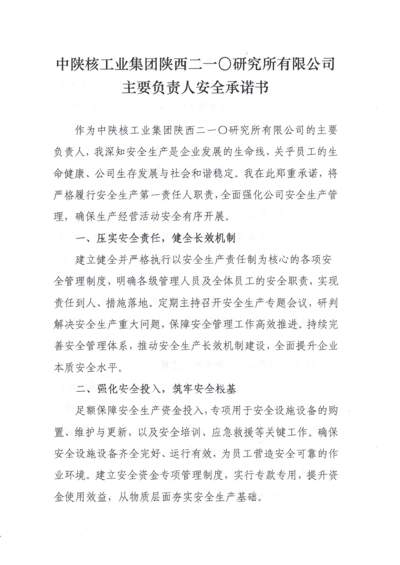 二一〇所主要負(fù)責(zé)人安全承諾書(shū)
